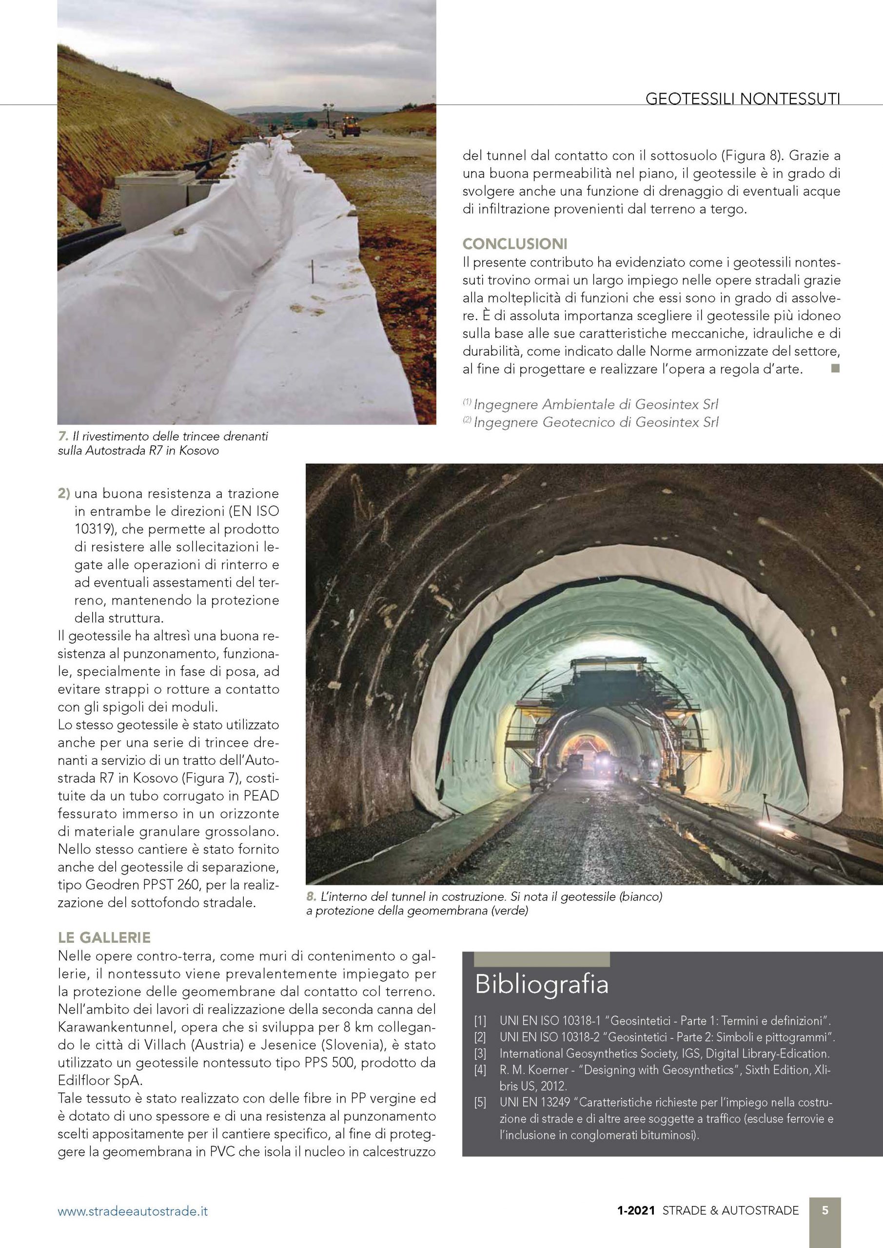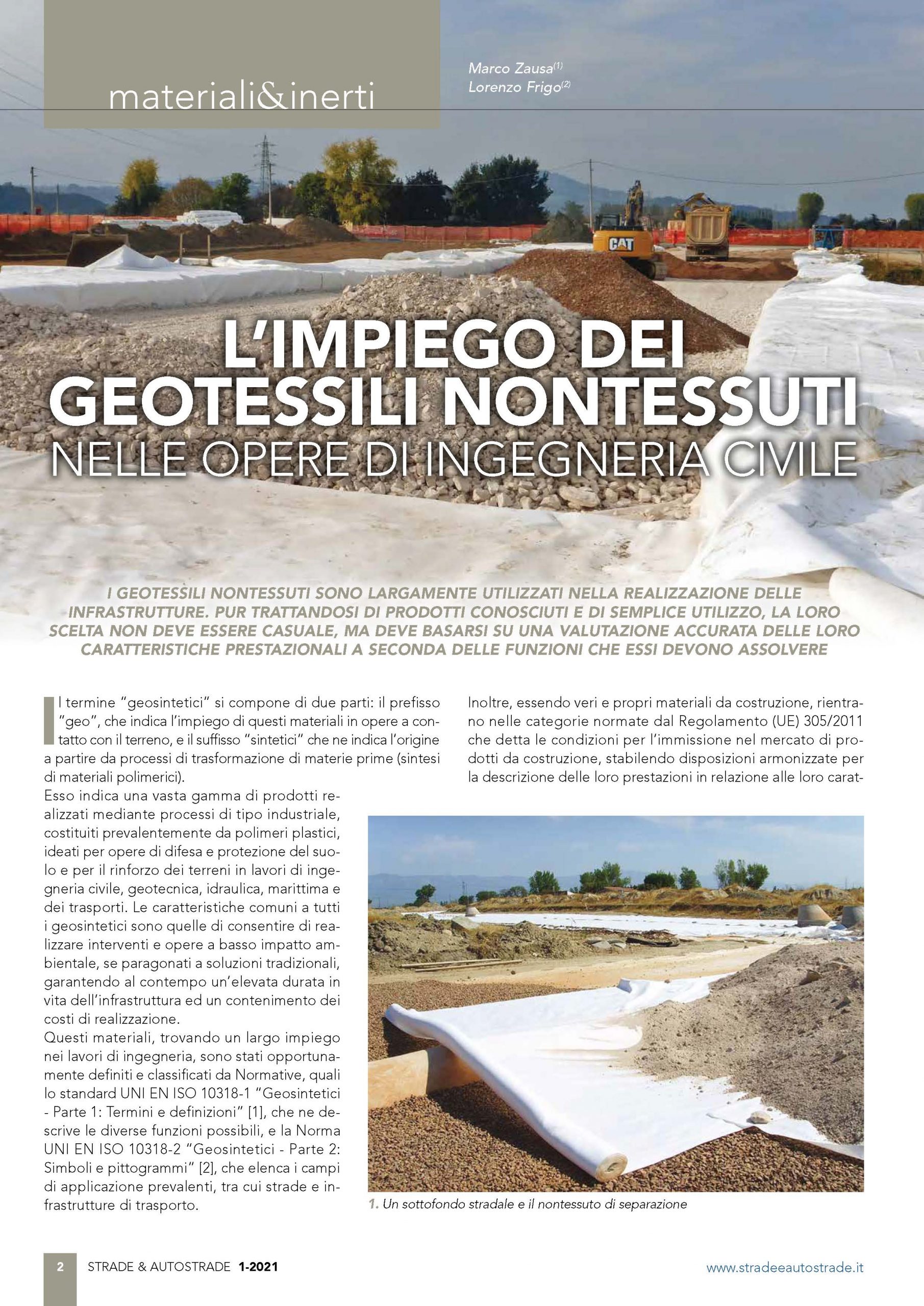 Non-woven geotextiles are widely employed in the realization of infrastructures. Whilst these products are well-known and easy to use, their selection must not be a matter of random choice, but rather, based on a careful assessment of their performance specifications, and bearing in mind the functions they are required to fulfil.