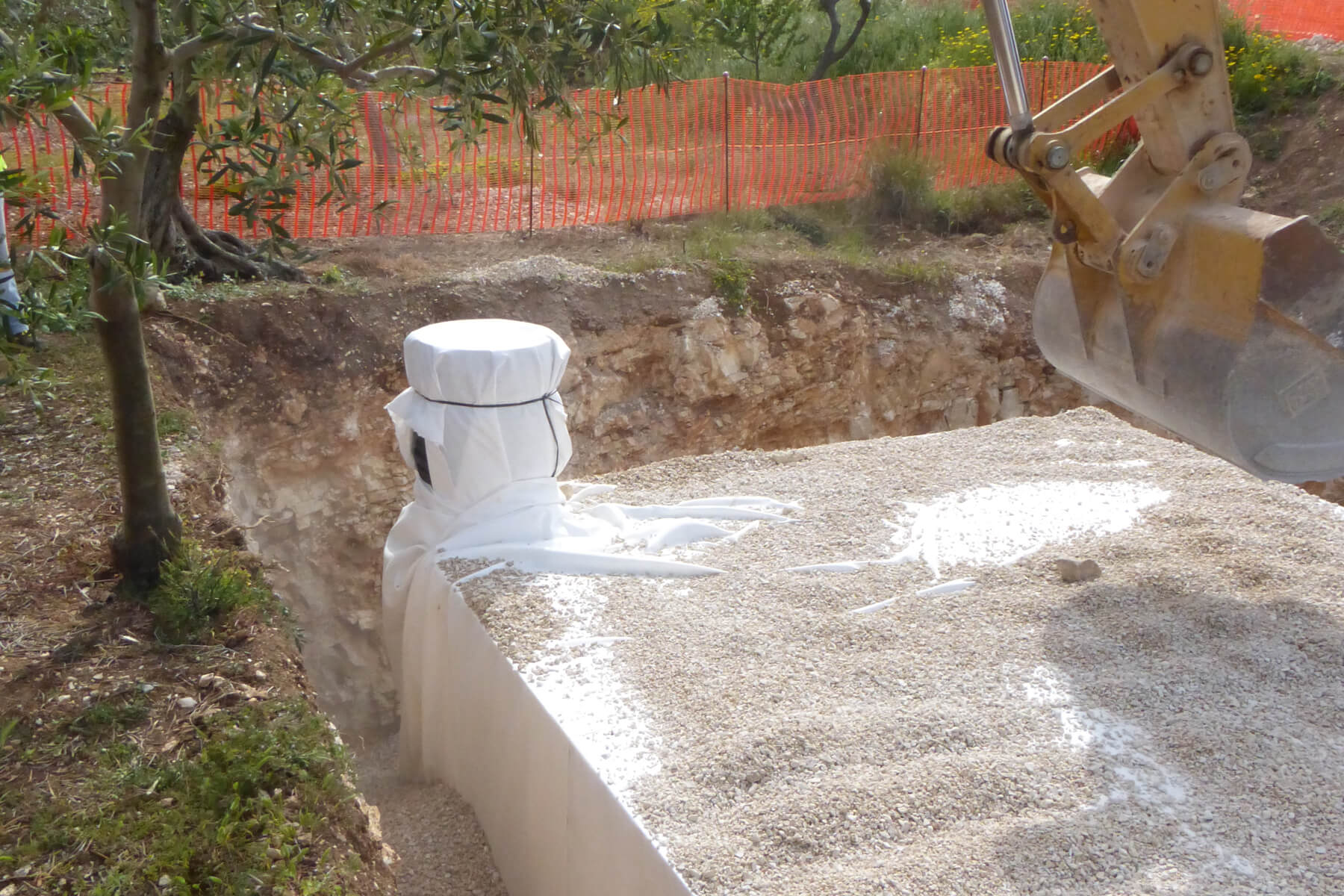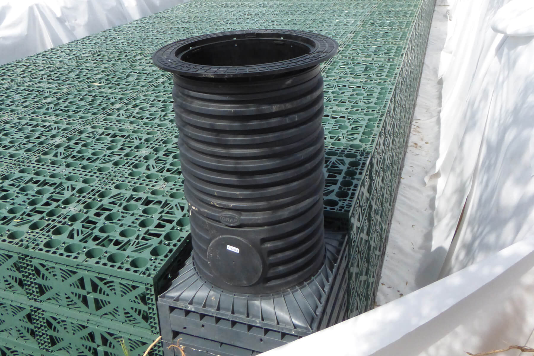 Nell’ambito della realizzazione di una serie di raccordi stradali tra la S.S.16 e la viabilità minore è stata prevista la realizzazione di 6 trincee drenanti al di sotto delle aiuole degli svincoli, al fine di smaltire nel sottosuolo le acque meteoriche provenienti dalla sede stradale, data la mancanza di un recettore superficiale. Verificate le condizioni di progetto in termini di spazio disponibile e carichi applicati, Geosintex ha studiato e fornito una soluzione con l’impiego di ECOBLOC Light ed ECOBLOC Inspect Flex, idonea per carichi leggeri (fino a 12 t) e accessibile per ispezione e pulizia periodica. L’uso dei moduli in materiale plastico ha agevolato notevolmente le operazioni in cantiere, grazie alla minimizzazione degli ingombri di stoccaggio e alla velocizzazione delle operazioni di posa, aspetti di grande rilevanza nei lavori stradali.