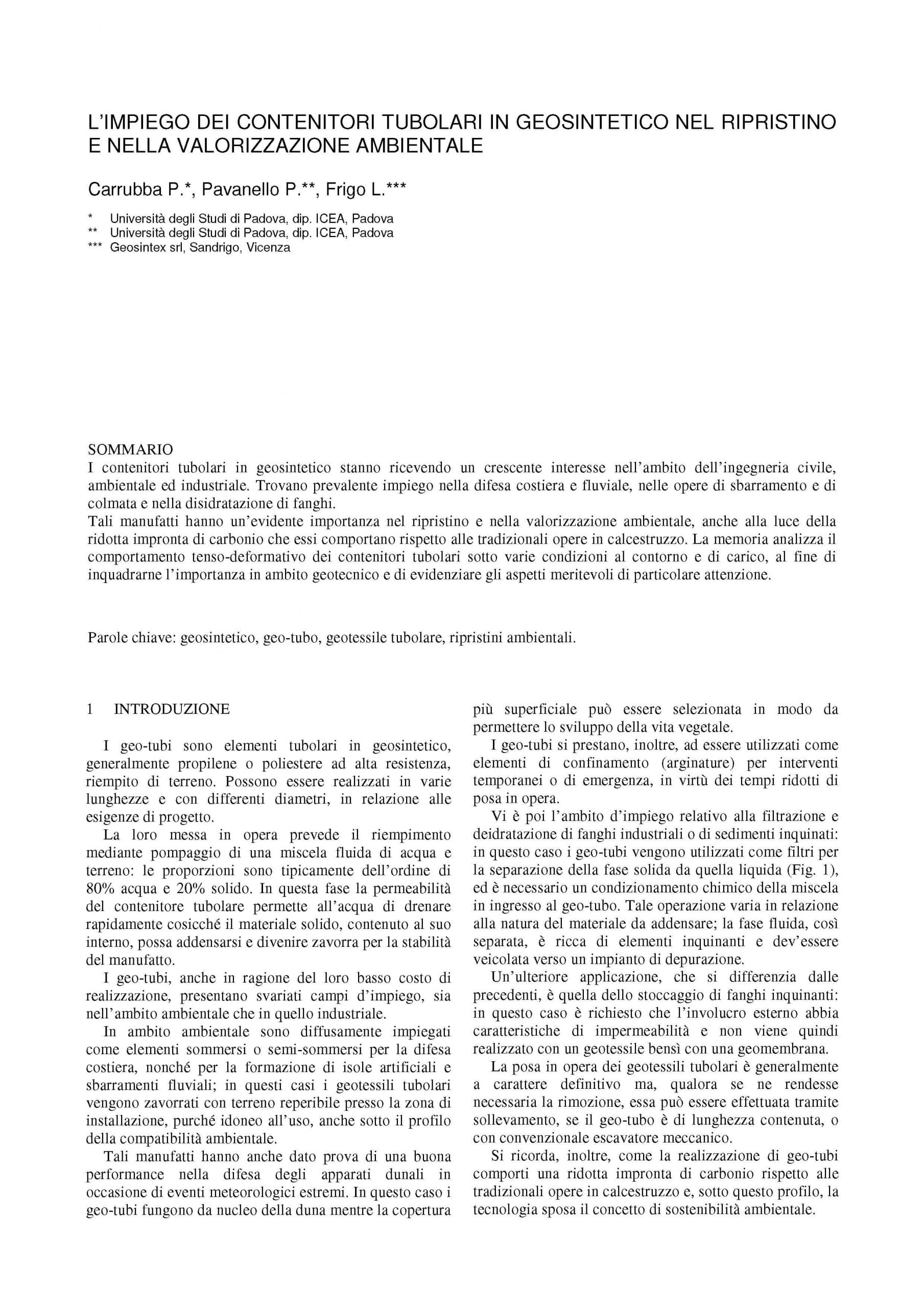 * Università degli Studi di Padova, dip. ICEA, Padova